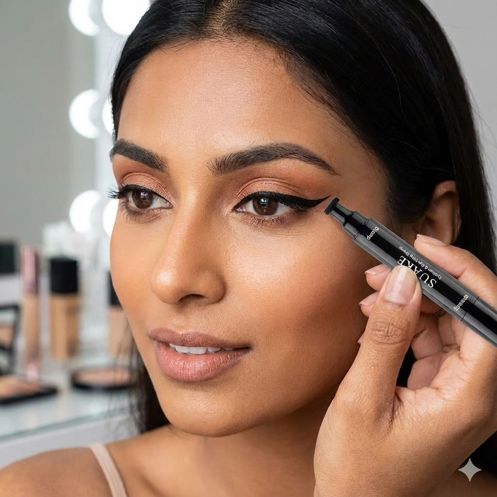 Designed with a wing stamp on one side and a smooth-flow eyeliner on the other, this clever pen gives you a complete eye makeup solution in a single product. No need for multiple tools or messy techniques.